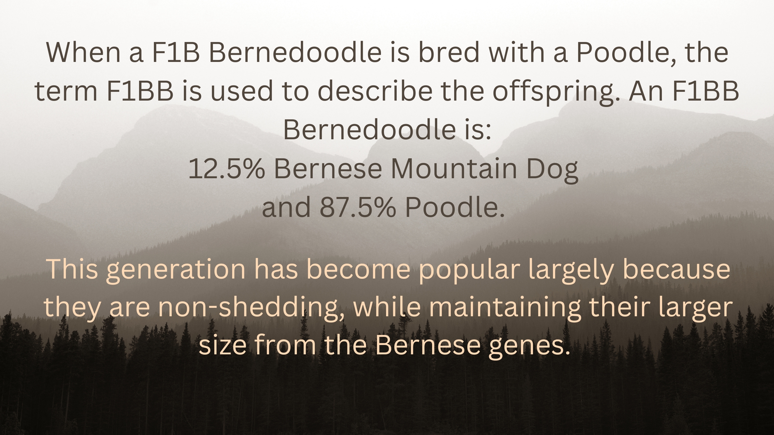 One of the most amazing and sought-after traits of the F1BB Bernedoodle is its nonshedding coats. Bernedoodles can come in a variety of colors, mostly determined by their lineage. Looking at their parents’ coat genetics is an indicator of what the pups will have.