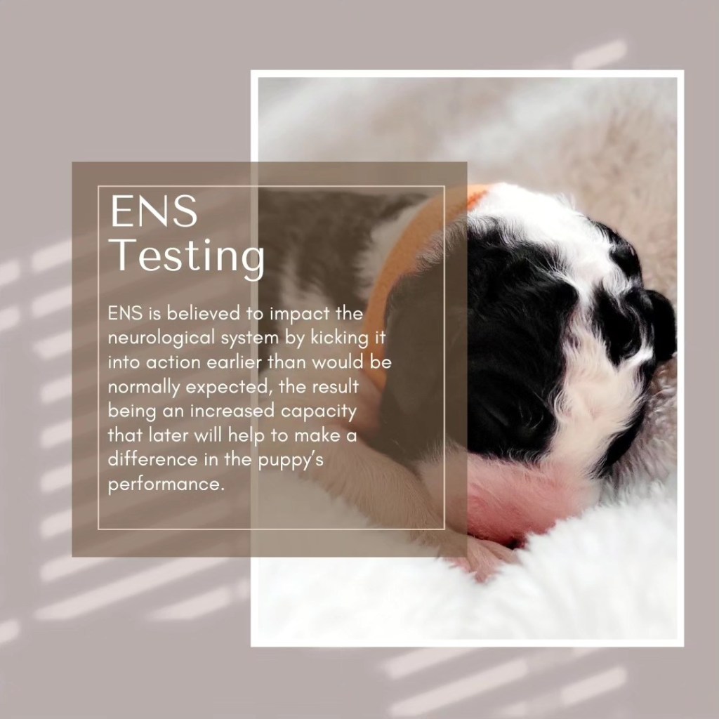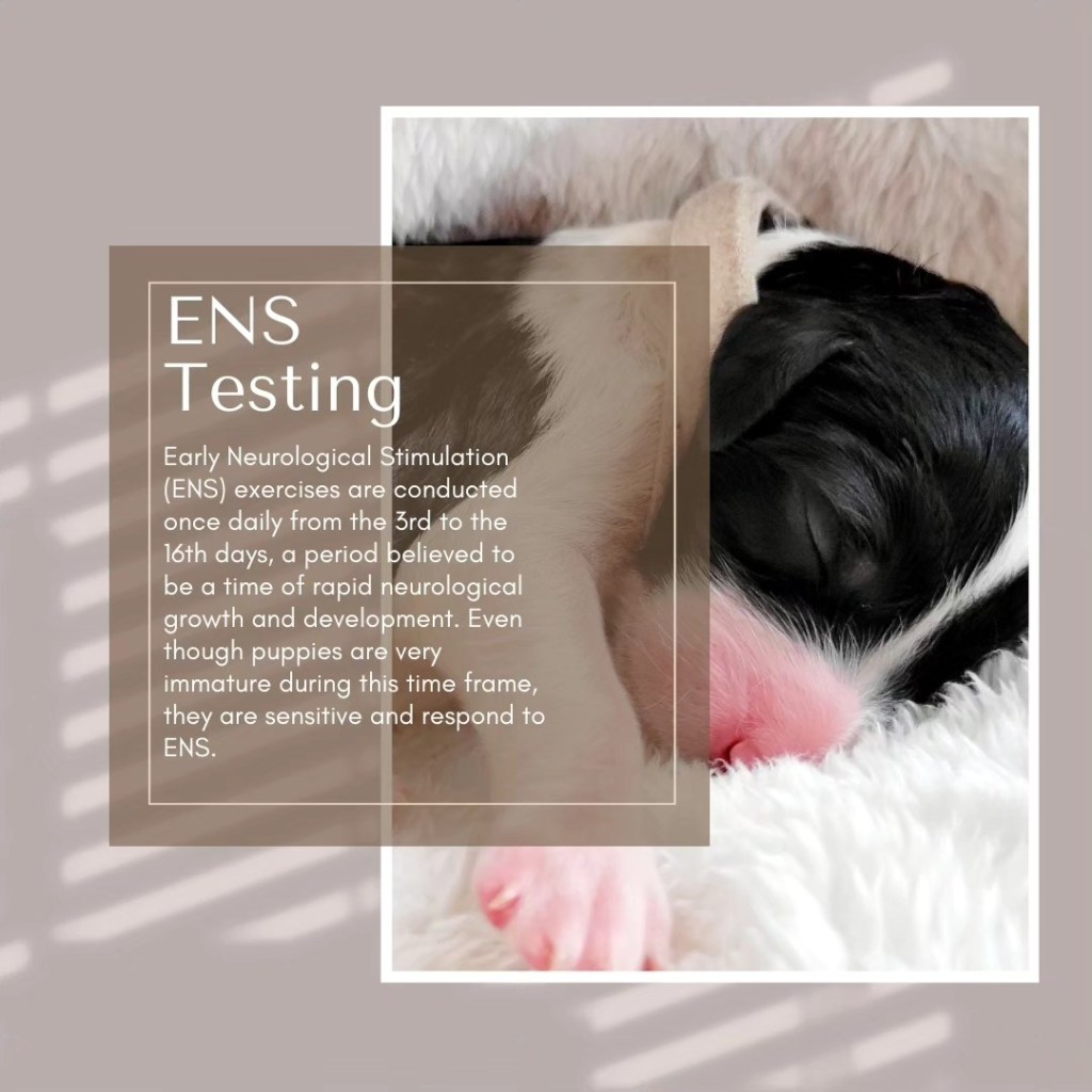 Starting from the earliest days of the puppy’s life, we implement Early Neurological Stimulation practices and training for all pups. Our goal is to develop a well-rounded puppy before they go to their forever homes. This means we will be able to provide pups who are more tolerant to stress, sounds, smells, and will be capable of remaining calm when exposed to such in their new environments.